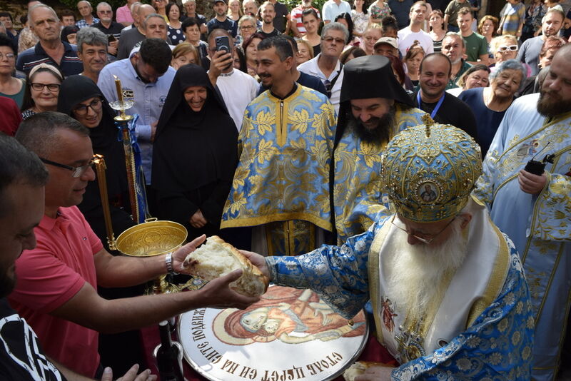 И еве денеска ние го празнуваме нејзиното раѓање во светот, раѓањето на единствената во целиот свет која можела да соедини во себе две големини, овие две природи, Божественото и Човечкото. Затоа и се молиме: Пресвета Богородице, секогаш биди со нас и моли Го својот Син и наш Бог за нас грешните. Амин.
