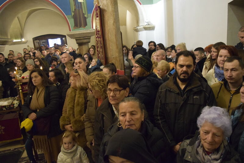 Торжествата продолжија на 08 делември 2023 година, во истиот манастир „Св. Климент и Пантелејмон“ на Плаошник во Охрид, кога беше отслужена света архиерејска Литургија, на којашто чиноначалствуваше Митрополитот Тимотеј, во сослужение на архимандритот Нектариј, протоереј-ставрофорите Никола Христоски и Кирил Јованоски, свештеникот Атанас Казанџиски, еромонахот Никодим, протоѓаконот Николче Ѓурѓиноски и ѓаконот Марко Спасовски. По завршувањето на Литургијата, беше прекршен празничниот колач, а Митрополитот Тимотеј се обрати кон верниците со пригодна беседа, којашто ви ја пренесуваме во целост.