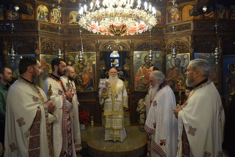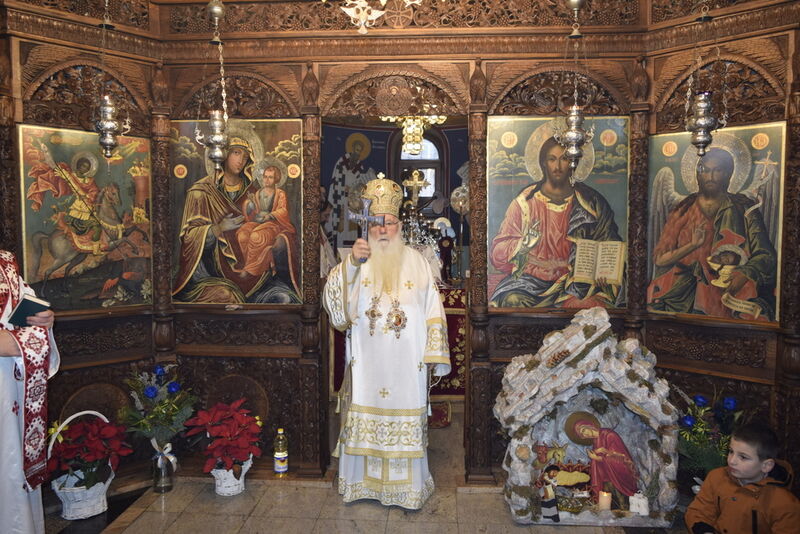 На денот кога нашиот Спасител Христос се раѓа по тело од Пресветата Дева, на денот кога Словото стана тело и Беспочетниот влегува во времето, на пресветлиот празник на Рождеството Христово - Божик, во храмот „Св. вмч. Ѓорѓи“ во Охрид, беше отслужена света архиерејска Литургија, на којашто чиноначалствуваше Неговото Високопреосвештенство Митрополитот Плаошко-струшки и Дебарско-кичевски и Администратор Австралиско-сиднејски г. Тимотеј, во сослужение на архимандритот Нектариј, протоереј-ставрофорите Никола Христоски, Сашо Богданоски и Игор Никовски, протоѓаконот Николче Ѓурѓиноски и ѓаконот Марко Спасовски. На Божикната Литургија присуствуваше и Претседателот на владата на РСМ, г-дин Димитар Ковачевски. По завршувањето на Литургијата, беше прочитано и Божикното послание, испратено до сите верни чеда на Македонската православна црква - Охридска архиепископија од Архиепископот Охридски и Македонски г.г. Стефан, заедно со членовите на Светиот архиерејски синод на МПЦ-ОА. Истото ви го пренесуваме во целост.