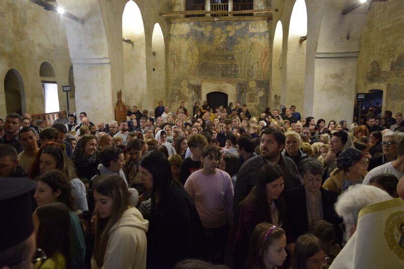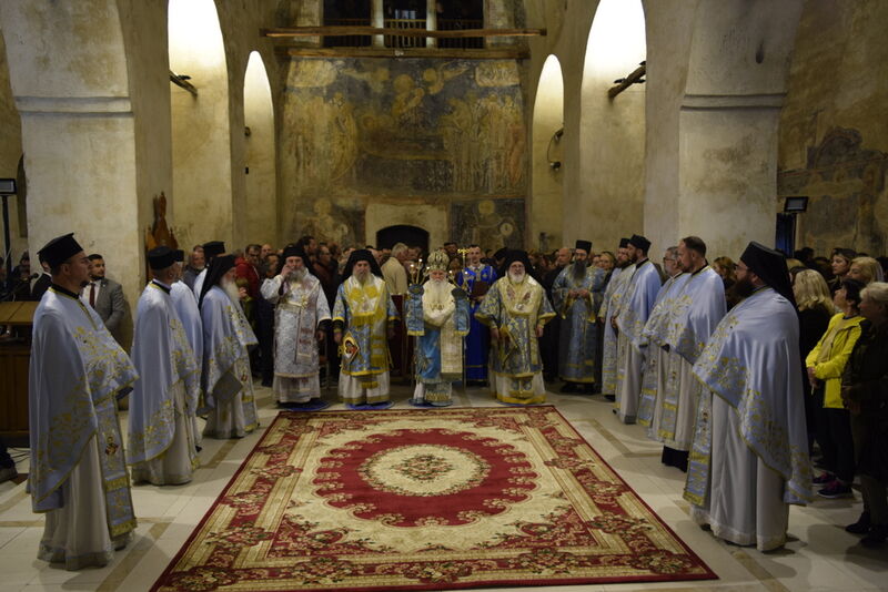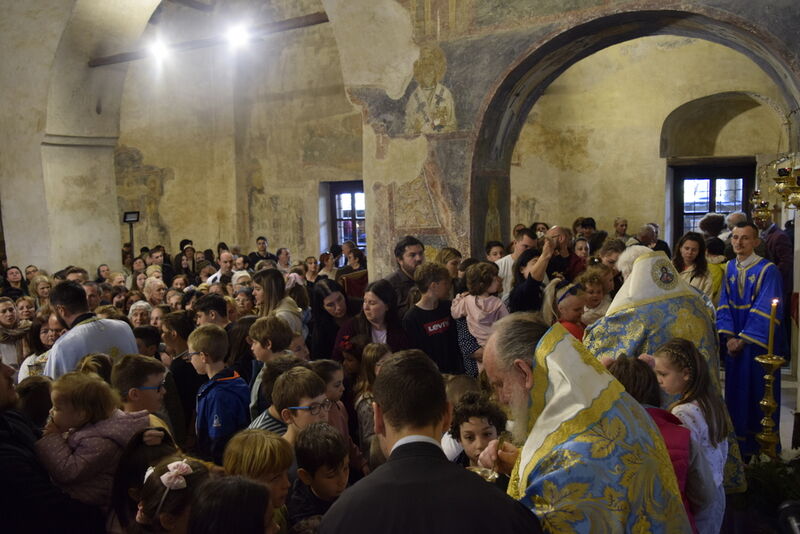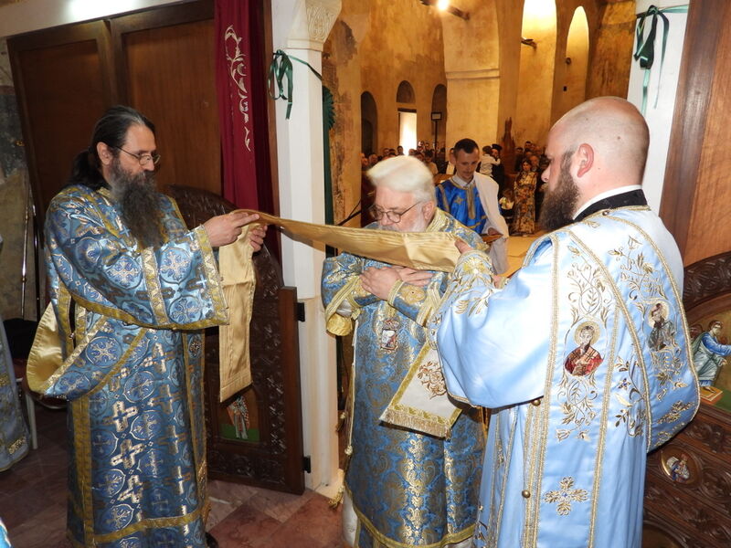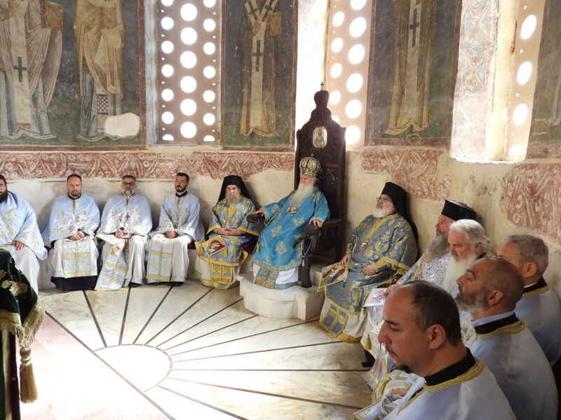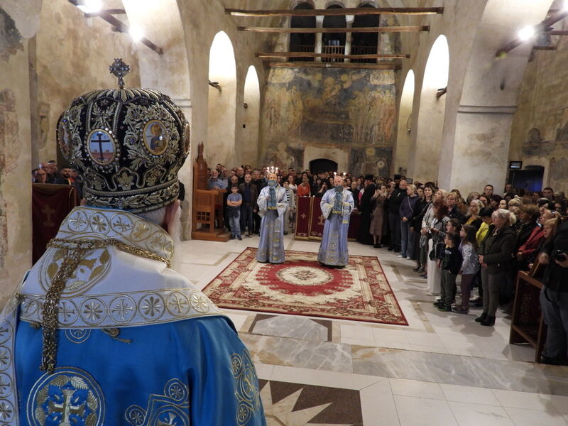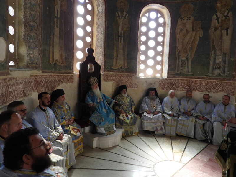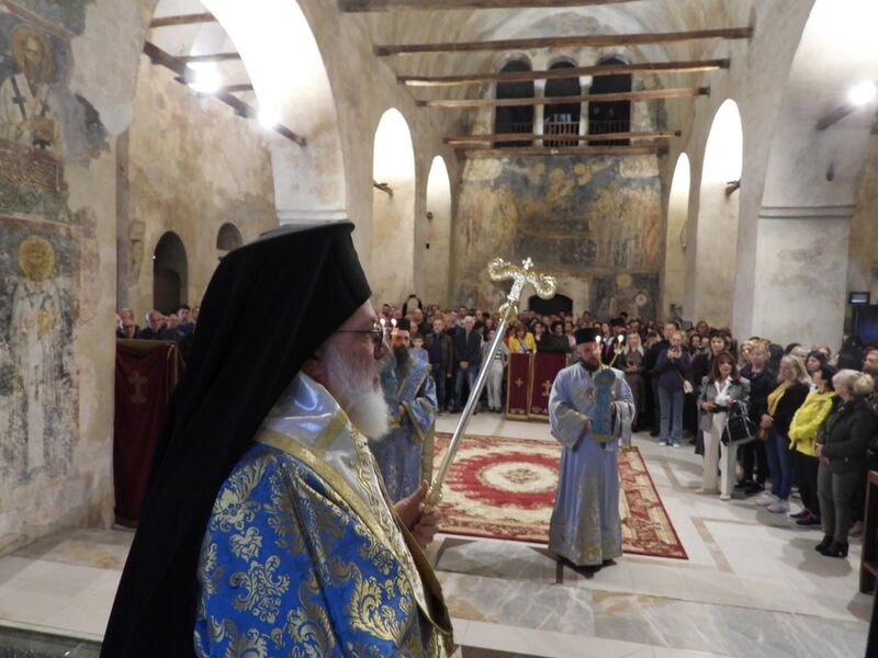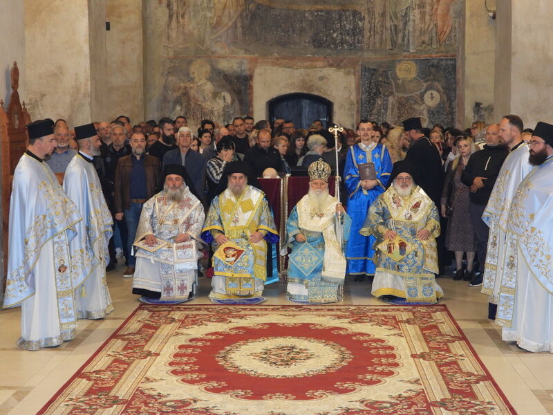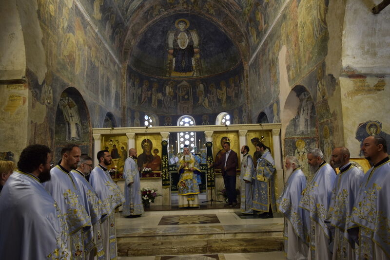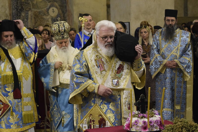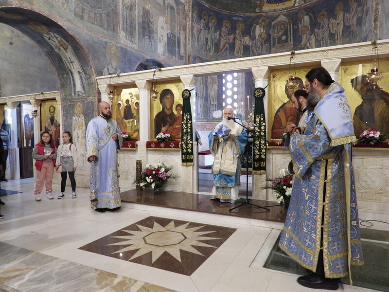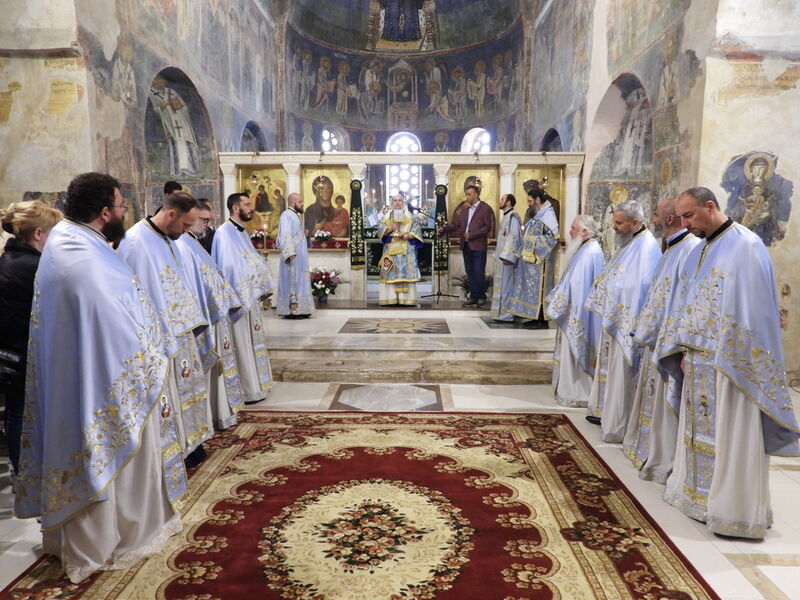 На 07.04.2024 година, во Третата недела од Великиот пост - Крстопоклона недела, и на празникот Благовештение на Пресвета Богородица, во катедралниот храм „Св. Софија“ во Охрид, беше отслужена света архиерејска Литургија, на којашто чиноначалствуваше Неговото Високопреосвештенство Митрополитот Плаошко-струшки и Дебарско-кичевски и Администратор Австралиско-сиднејски г. Тимотеј, во сослужение на Нивните Високопреосвештенства Митрополитот на Имврос и Тенедос г. Кирил од Вселенската Патријаршија и Митрополитот на Додимотихо, Ористијада и Суфли г. Дамаскин од Грчката православна црква, Неговото Преосвештенство Епископот Делчевско-каменички г. Марко, архимандритот Нектариј, протоереј-ставрофорите Никола Христоски, Сашо Богданоски и Блажо Кожараски, протоерејот Горан Ставрески, свештениците Милан Ничевски и Ѓорѓи Блажевски, еромонахот Никодим, протоѓаконот Николче Ѓурѓиноски, ероѓаконот Хризостом од Света Гора и ѓаконот Марко Спасовски. Пред започнувањето на Литургијата, беше изнесен светиот Крст на поклонение, а по завршувањето на Литургијата, Митрополитот Тимотеј се обрати кон многубројниот верен народ со пригодна беседа, којашто интегрално ви ја пренесуваме. Митрополитот Тимотеј ја искористи оваа прилика и да им се заблагодари на гостите, најпрво на Митрополитот Кирил, кој повеќепати сослужува со нас и е чест гостин и голем пријател на нашата црква, а топло добредојде му посака и на Митрополитот Дамаскин, кој одвои од своето драгоцено време и со голема љубов дојде да сослужува на овој голем Богородичен празник. Митрополитот Кирил возврати на поздравот на нашиот Владика, и на самиот крај, му подари прекрасна икона од Пресветата Троица и прекрасен Крст. На многаја лета!
