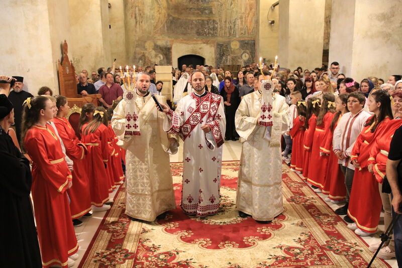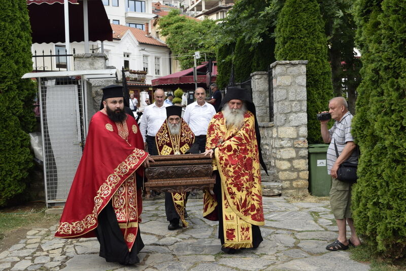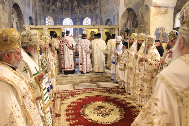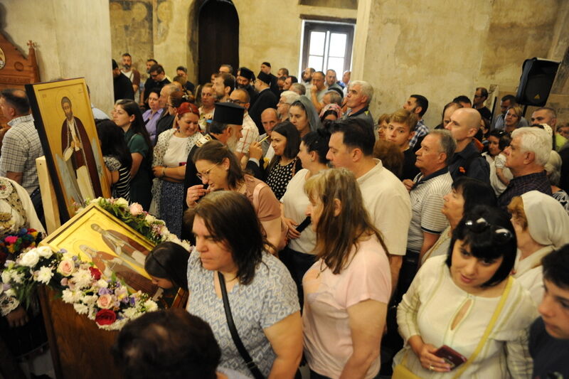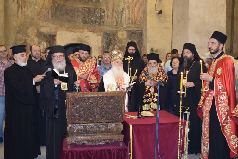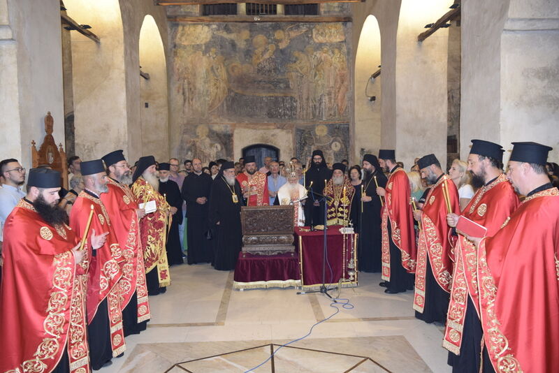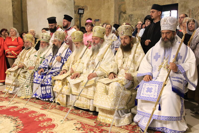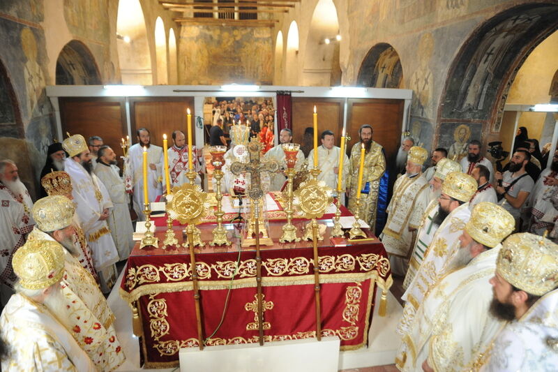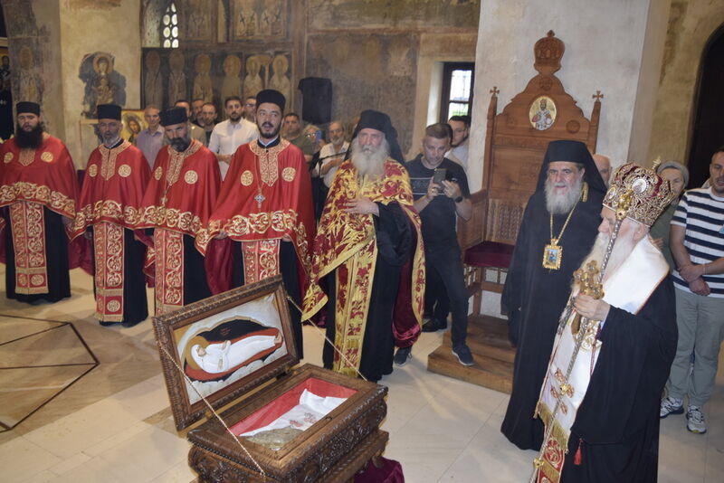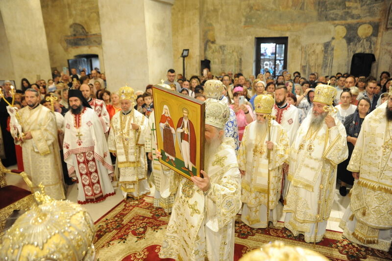 Утредента, на 09 јуни 2024 година, во храмот „Света Софија“, беше отслужена света архиерејска Литургија, на којашто чиноначалствуваше Неговото Блаженство Митрополитот Скопски и Архиепископ Охридски и Македонски и на Јустинијана Прима г.г. Стефан, во сослужение на Епископот Нишки г. Арсениј од Српската православна црква, Митрополитот Старозагорски г. Кипријан од Бугарската православна црква, Митрополитите Дебарско-кичевски г. Тимотеј, Повардарски г. Агатангел, Крушевско-демирхисарски г. Јован, Европски г. Пимен, Брегалнички г. Иларион, Тетовско-гостиварски г. Јосиф, како и Епископите: Илиндинско-дељадровски г. Јоаким, Делчевско-каменички г. Марко, Дремвитски г. Давид, Антаниски г. Партениј, Стобиски г. Јаков и Велички г. Никола. Сослужуваа и архимандритите Нектариј и Доситеј, протоереј-ставрофорите Никола Христоски, Никола Грамбозов, Димче Ѓорѓиески и Александар Димоски, протоерејот Васко Голабоски, свештеникот Александар Матески, протоѓаконите Николче Ѓурѓиноски, Александар Димитријов, Драган Ѓорѓиевски, Ѓорѓи од Нишката епархија, Драган Иванов, ѓаконите Дејан Борисов, Стефан Гоговски и други. На Литургијата присуствуваа и Митрополитот Преспанско-пелагониски и Администратор Австралиско-новозеландски г. Петар, Епископот Хераклејски г. Климент, и многубројно свештенство и верен народ. На Малиот вход, Епископот Климент ја прочита Одлуката за впишување во редот на светиите, а нашиот надлежен архиереј Митрополитот Тимотеј го прочита краткото житие на светиите (синаксарот). Тогаш за првпат се отпеа и тропарот на новопрогласените светии, а го испеаја богословите Димитар Петрески и Филип Тончевски. Потоа беше изнесена иконата на новопрогласените Вишенски светии, а Архиепископот Стефан благослови со неа на четирите страни, а потоа беа отворени и моштите на светата Спаса и изложени за поклонение. За ова време, свештениците Ѓорѓи Блажевски и Љупчо Бакрачески повеќепати го отпеаја Величанието на Вишенските светии. Со овој чин светите Спасе Вевчански и Спаса Вишенска и официјално беа вбројани во редот на светиите, а потоа светата Литургија продолжи според востановениот ред. Литургијата беше уште поукрасена со прекрасните гласови на двата хора: од Бигорскиот манастир и градскиот црковен хор „Св. Климент Охридски“, а по завршувањето на Литургијата, Архиепископот Стефан се обрати со пригодна беседа кон неизбројниот верен народ. Светите Спасе и Спаса нека бидат наши постојани застапници и молитвеници пред престолот на Севишниот Бог, и нека се застапуваат за нас грешните, та и сите ние да го најдеме патот што води кон спасението, и заедно со нив да се насладуваме со вечните блага. Нивниот сеславен спомен нека биде вечен, а ние верните да го прославуваме со радост и со подражавање на нивниот подвиг. На многаја лета!