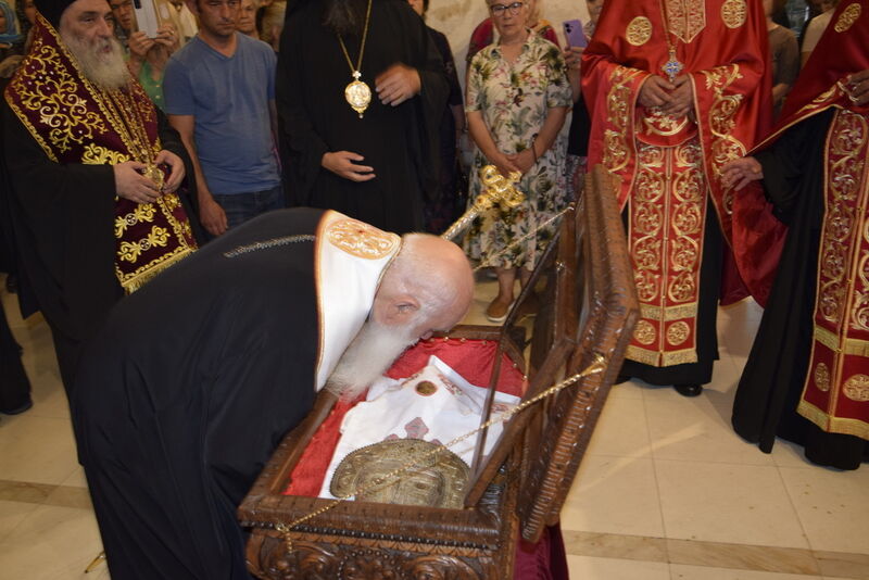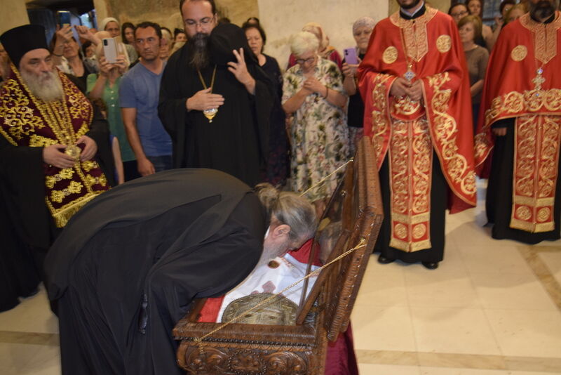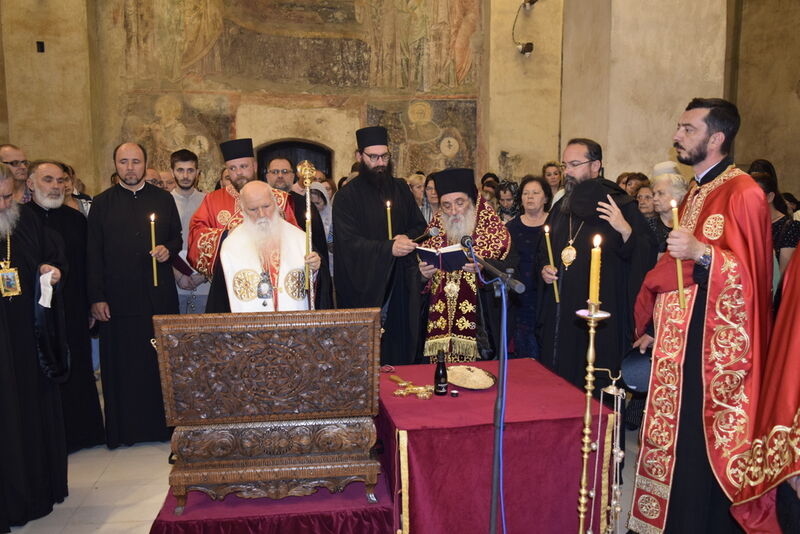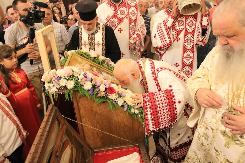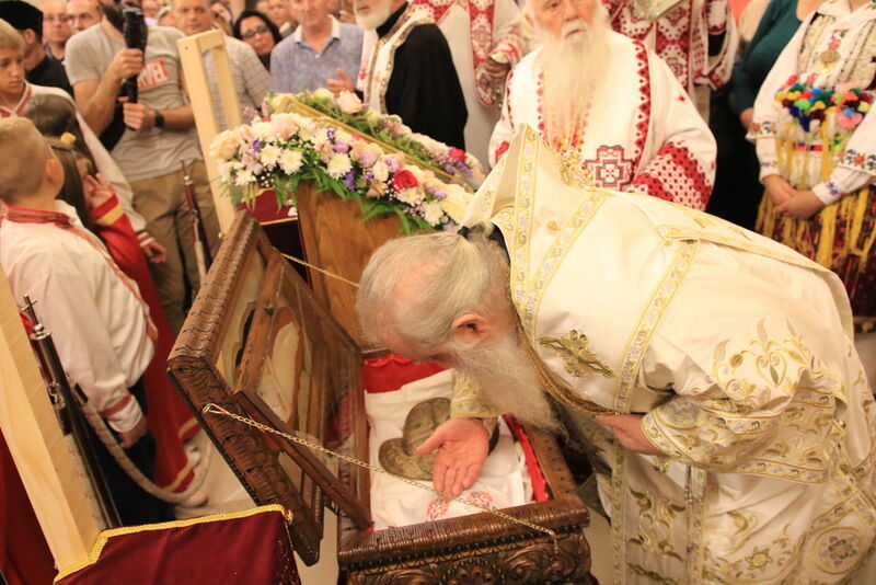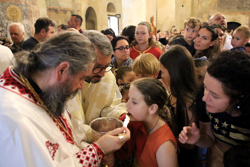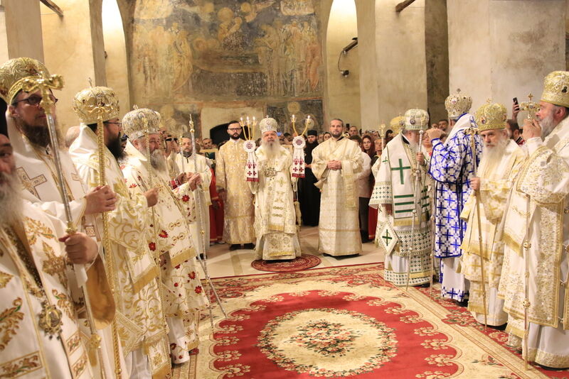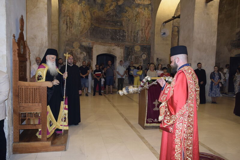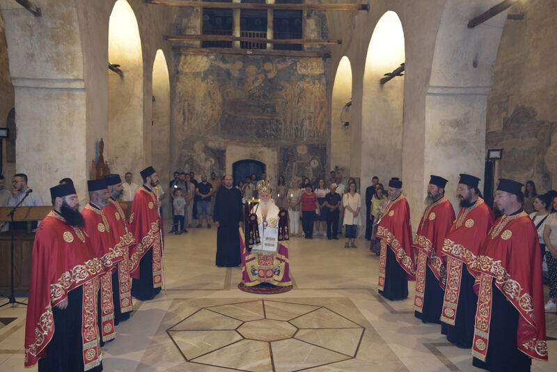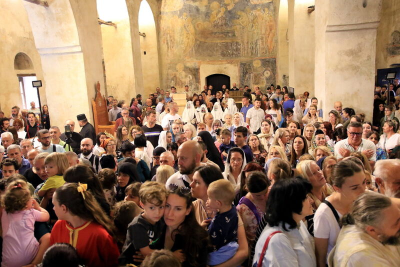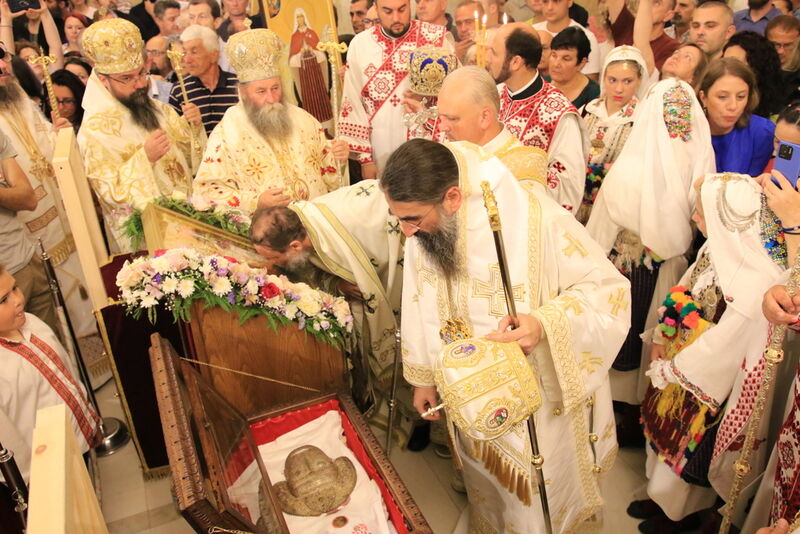 Утредента, на 09 јуни 2024 година, во храмот „Света Софија“, беше отслужена света архиерејска Литургија, на којашто чиноначалствуваше Неговото Блаженство Митрополитот Скопски и Архиепископ Охридски и Македонски и на Јустинијана Прима г.г. Стефан, во сослужение на Епископот Нишки г. Арсениј од Српската православна црква, Митрополитот Старозагорски г. Кипријан од Бугарската православна црква, Митрополитите Дебарско-кичевски г. Тимотеј, Повардарски г. Агатангел, Крушевско-демирхисарски г. Јован, Европски г. Пимен, Брегалнички г. Иларион, Тетовско-гостиварски г. Јосиф, како и Епископите: Илиндинско-дељадровски г. Јоаким, Делчевско-каменички г. Марко, Дремвитски г. Давид, Антаниски г. Партениј, Стобиски г. Јаков и Велички г. Никола. Сослужуваа и архимандритите Нектариј и Доситеј, протоереј-ставрофорите Никола Христоски, Никола Грамбозов, Димче Ѓорѓиески и Александар Димоски, протоерејот Васко Голабоски, свештеникот Александар Матески, протоѓаконите Николче Ѓурѓиноски, Александар Димитријов, Драган Ѓорѓиевски, Ѓорѓи од Нишката епархија, Драган Иванов, ѓаконите Дејан Борисов, Стефан Гоговски и други. На Литургијата присуствуваа и Митрополитот Преспанско-пелагониски и Администратор Австралиско-новозеландски г. Петар, Епископот Хераклејски г. Климент, и многубројно свештенство и верен народ. На Малиот вход, Епископот Климент ја прочита Одлуката за впишување во редот на светиите, а нашиот надлежен архиереј Митрополитот Тимотеј го прочита краткото житие на светиите (синаксарот). Тогаш за првпат се отпеа и тропарот на новопрогласените светии, а го испеаја богословите Димитар Петрески и Филип Тончевски. Потоа беше изнесена иконата на новопрогласените Вишенски светии, а Архиепископот Стефан благослови со неа на четирите страни, а потоа беа отворени и моштите на светата Спаса и изложени за поклонение. За ова време, свештениците Ѓорѓи Блажевски и Љупчо Бакрачески повеќепати го отпеаја Величанието на Вишенските светии. Со овој чин светите Спасе Вевчански и Спаса Вишенска и официјално беа вбројани во редот на светиите, а потоа светата Литургија продолжи според востановениот ред. Литургијата беше уште поукрасена со прекрасните гласови на двата хора: од Бигорскиот манастир и градскиот црковен хор „Св. Климент Охридски“, а по завршувањето на Литургијата, Архиепископот Стефан се обрати со пригодна беседа кон неизбројниот верен народ. Светите Спасе и Спаса нека бидат наши постојани застапници и молитвеници пред престолот на Севишниот Бог, и нека се застапуваат за нас грешните, та и сите ние да го најдеме патот што води кон спасението, и заедно со нив да се насладуваме со вечните блага. Нивниот сеславен спомен нека биде вечен, а ние верните да го прославуваме со радост и со подражавање на нивниот подвиг. На многаја лета!