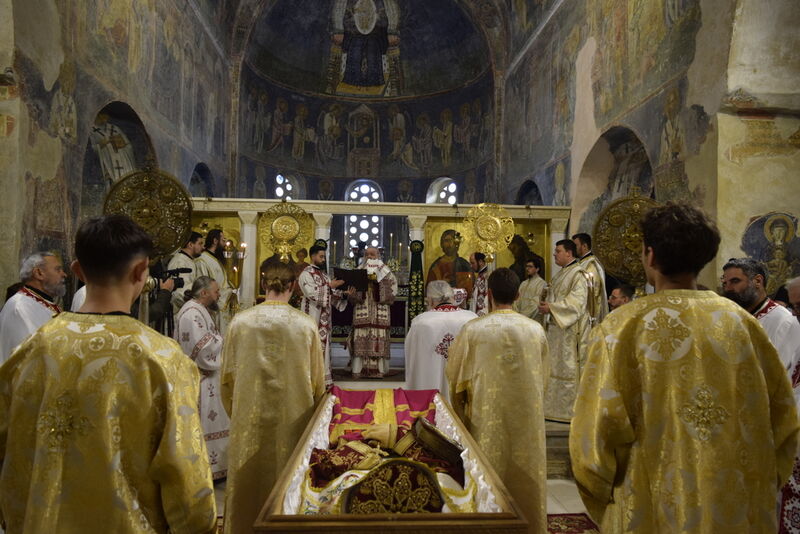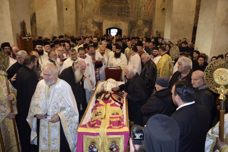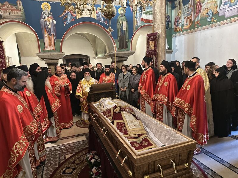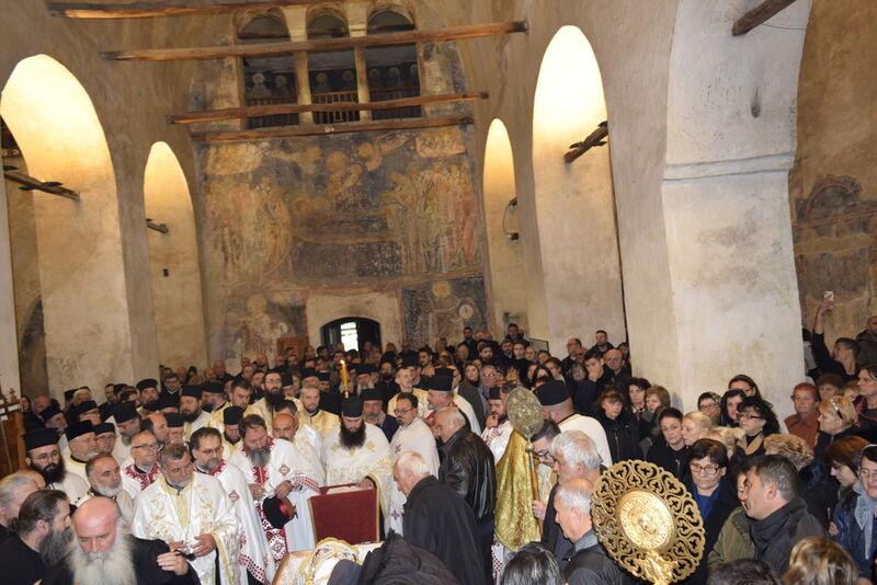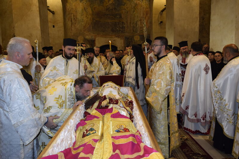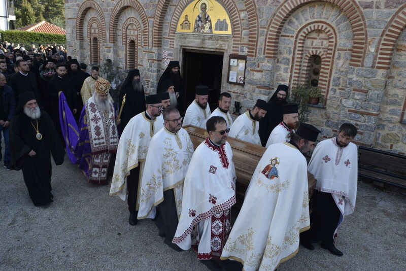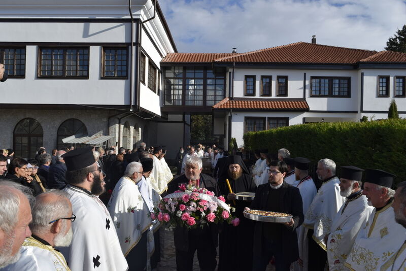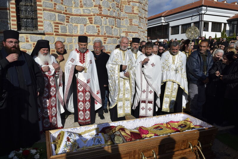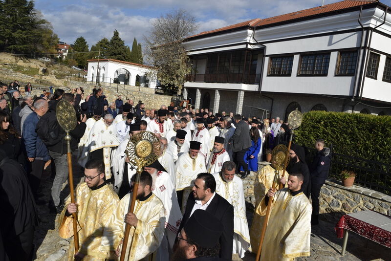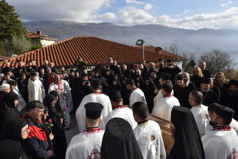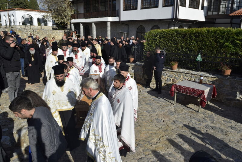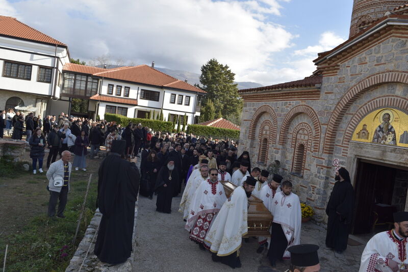 И, повторно, малку се овие недостојни зборови за таков човек, кој од срце ја сакаше својата Црква и Татковината. Ете таков човек нашиот Спасител, Господ Исус Христос, на 25 ноември 2024 година, на денот кога го прославуваме споменот на св. Јован Милостив, на преп. Нил Синајски и на св. пророк Ахиј, повика при Себе. Еден од нашите отци веднаш ми забележа: „Отче, знаеш кој ден е денеска според стариот стил? Денеска е свети Климент“. Можеме слободно да кажеме дека и свети Климент сакал токму тогаш да го повика. Го повика блиску до себе, горе на небесата, а и ние долу на земјата, го положивме блиску до него, да се изразиме охридски: в комшии.