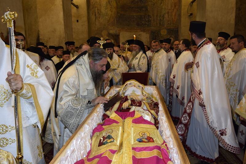 Високопреосвештен Владико, моиве зборови, колку и да се, ќе бидат малку за да ја кажат сета вистина и за да ја раскажат сета книга на Вашиот живот. Како Синод и како Црква, заедно со свештенослужителите, монаштвото и верниот народ, ќе Го молиме Оној Којшто не гледа кој е кој, туку секогаш суди според делата[12], да ја добиете заслужената награда, како достоен и беспрекорно работлив архипастир, кој верно ја проповедаше науката Христова. Знаеме дека денес ги гледате небесата отворени и Синот Човечки како стои оддесно на Бога[13] и дека го слушате гласот на Отецот небесен, кој Ви вели да влезете во радоста на Господарот[14]. И веруваме, Владико, дека оттаму ќе се застапувате за нашиот богољубив народ и за нашата Света Црква.