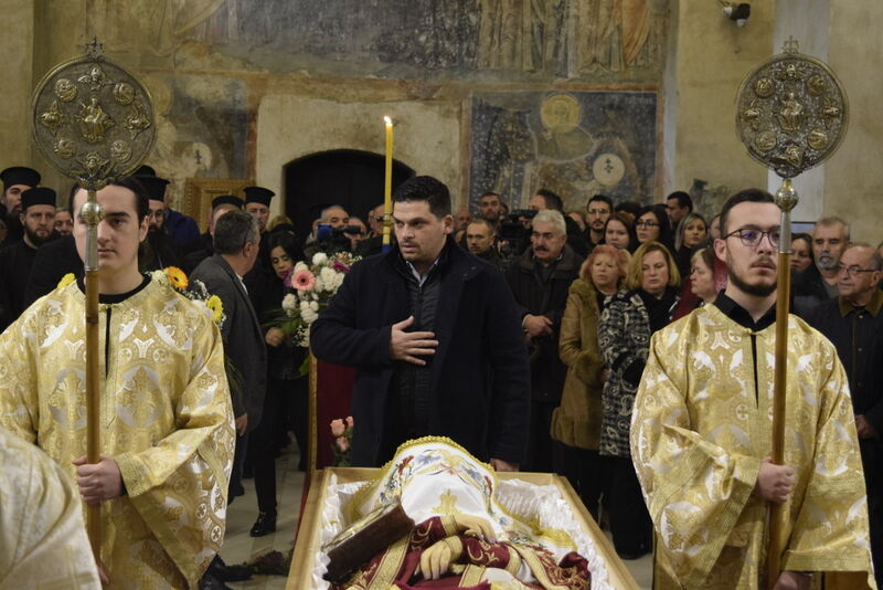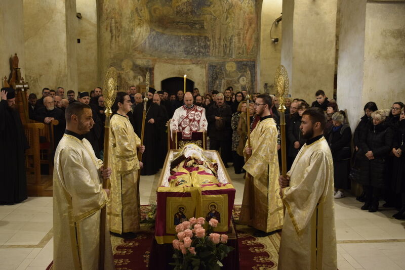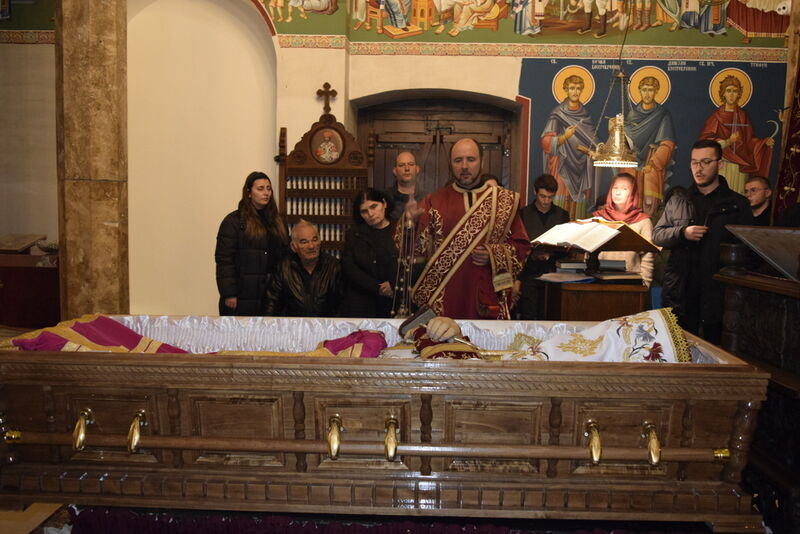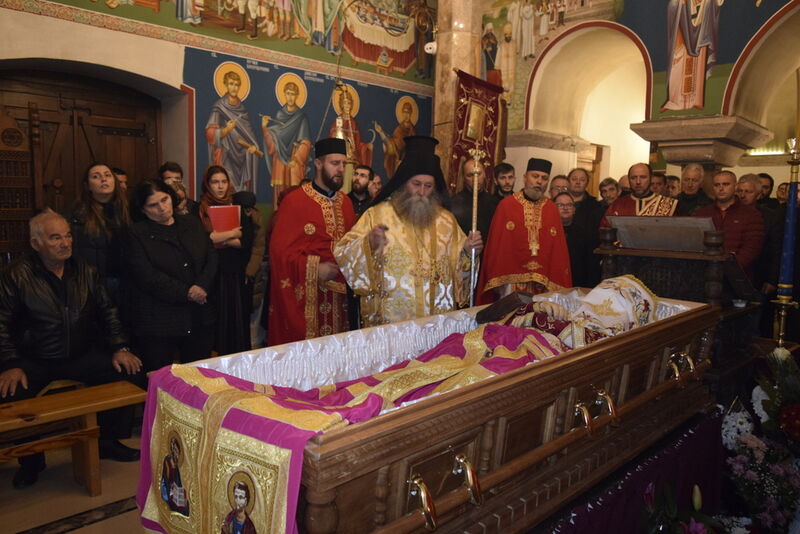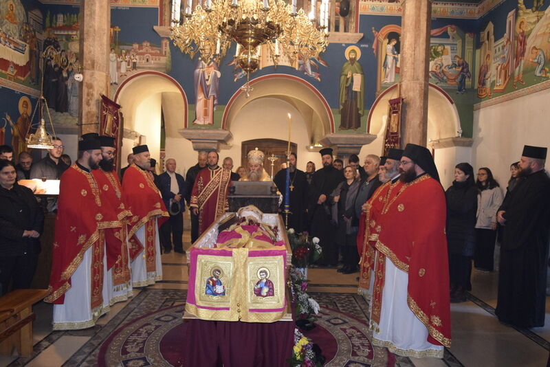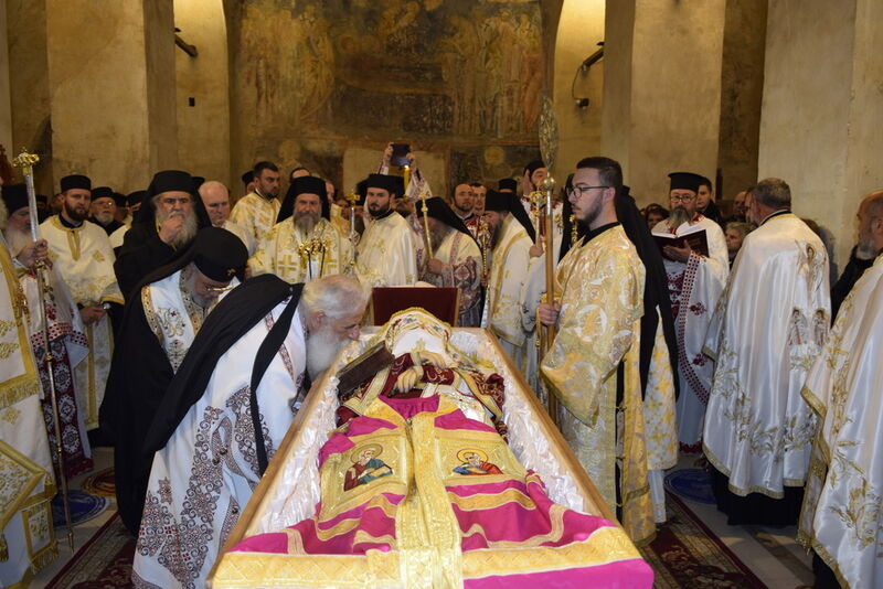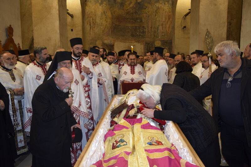 Во текот на денот повторно поминуваше верниот народ кај својот довчерашен духовен отец, а дојде и Неговото Високопреосвештенство Митрополитот на Корча г. Јован, од Албанската православна црква, кој отслужи Трисагија покрај телото на блаженоупокоениот Митрополит и се прости од него.