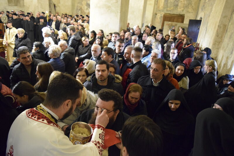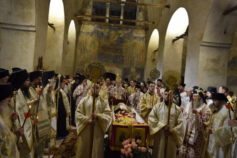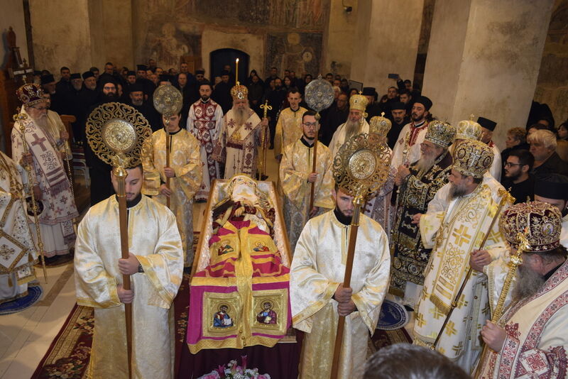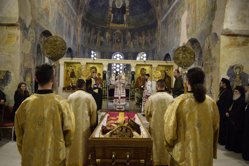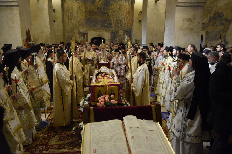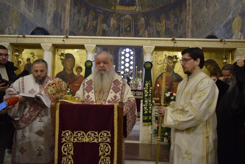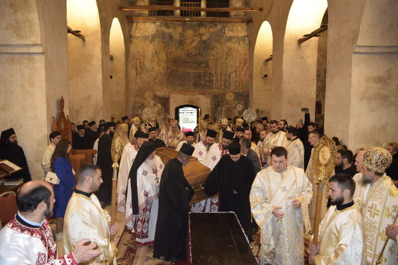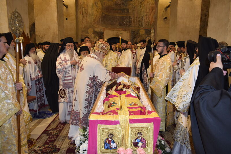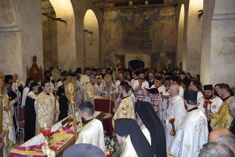 [11] На Божествената Литургија сослужуваа: Неговото Високопреосвештенство Митрополитот Врањски г. Пахомиј и Неговото Преосвештенство Епископот Хвостански г. Алексеј од Српската Православна Црква, и Неговото Високопреосвештенство Митрополитот Старозагорски г. Кипријан од Бугарската Православна Црква. Претходниот ден, пак, Помен за блаженоупокоениот Митрополит Тимотеј отслужи Неговото Високопреосвештенство Митрополитот Корчански г. Јован, од Албанската Православна Црква.