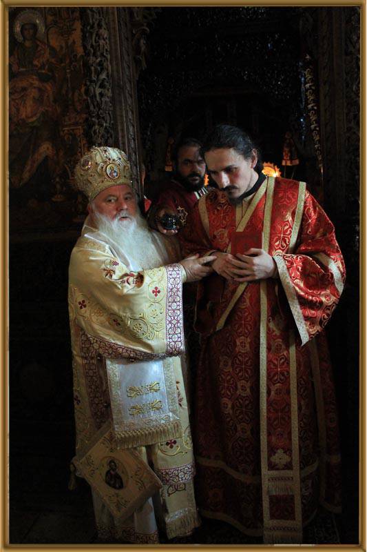 Прославата продолжи утредента со свечена архиерејска Литургија, на која чиноначалствуваше Митрополитот Тимотеј, во сослужение на Митрополитот Агатангел, архимандритот Партениј, игумен на Бигорската обител, еромонасите Доситеј и Макариј, свештеникот Димче Азески, ероѓаконот Еразмо и ѓаконите Николче Ѓурѓиноски, Васко Голабоски и Илија Поп Гонов. Уште не беше помината радоста и восхитот од придобивката на тројцата нови браќа, кога по молитвите на светиот Јован Крстител, манастирот доби уште двајца нови свештенослужители. Митрополитот Тимотеј го ракоположи монахот Ефросиниј во ероѓаконски чин, а ероѓаконот Еразмо се вброи во редот на свештенството. По завршувањето на Литургијата беше осветено коливото и беше извршен чинот на Мал водосвет, а Митрополитот Агатангел се обрати кон присутните со пригодна беседа.