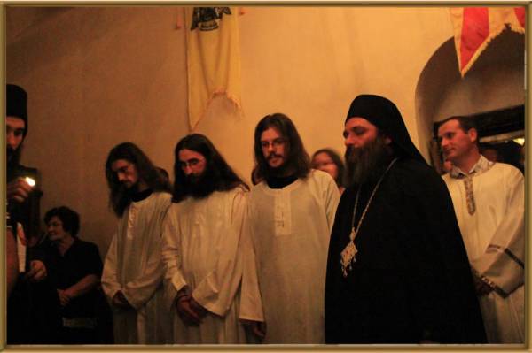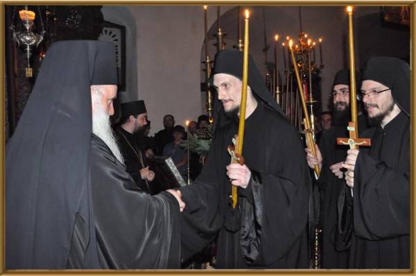 На 11.09.2012 година го прославивме споменот на Отсекувањето на чесната глава на славниот пророк, Претеча и Крстител Јован. Како и секоја година, овој празник свечено и торжествено се прославува во манастирот „Св. Јован Крстител – Бигорски“, кој го има овој пустиник и предвесник за свој ангел чувар. Празнувањето започна на 10.09.2012 година со свечена Вечерна богослужба, на која чиноначалствуваше Неговото Високопреосвештенство Митрополитот Повардарски г. Агатангел, во сослужение на архимандрит Јосиф, еромонасите Доситеј и Макариј, свештеникот Ненад Ѓорѓиески и ѓаконите Николче Ѓурѓиноски, Васко Голабоски и Илија Поп Гонов. На вечерната присуствуваше и Неговото Високопреосвештенство Митрополитот Дебарско-кичевски г. Тимотеј, со чиј благослов братството на Бигорскиот манастир се збогати со уште тројца нови војници Христови, кои беа потстрижани во монашки чин. Искушениците Маријан, Игор и Михаил со радост и смелост, но и подготвеност да ги победат сите ѓаволски искушенија, ги примија имињата на сесловенскиот просветител Кирил Солунски и на преподобните пречистански маченици Евнувиј и Аверкиј. По завршувањето на вечерната, Митрополитот Тимотеј се обрати кон новозамонашените, но и кон сите верни, со пригодна беседа, која подолу интегрално ви ја пренесуваме.