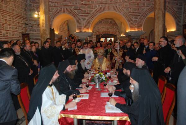 Откако се испеа многулетствието за народот, за Поглаварот, за сите архиереи и за новоизбраниот и наречен епископ, Архиепископот ја прекрши просфората и им подаде на сите архиереи, кои на свечената трпеза на љубовта, насреде храмот, преку заедничарењето со леб и вино, продуктите за светата причест, ја покажаа својата соборност и одлучност во нивниот избор. Архиепископот го благослови и попрска со осветена вода наречениот Архимандрит и со тоа заврши чинот наречение, а започна Вечерната богослужба, на која началствуваше новонаречениот архимандрит, во сослужение на архимандритите Нектариј, Партениј, Јосиф (Пејоски) и Дамаскин, игумените Никола и Јаков, еромонасите Доситеј, Григориј и Ефросиниј, протоѓаконите Димко Миланов, Ратомир Гроздановски и Антонио Дујовски и ѓаконите Николче Ѓурѓиноски и Ванчо Умленски. Певницата ја водеа псалтите Антонио Лазески, Виктор Недески, Гоце Ристески, Илија Ристески и Александар Петкоски, кои со напевите на старото македонско црковно пеење, ја исполнија Светиклиментовата обител со духовност и велелепие.