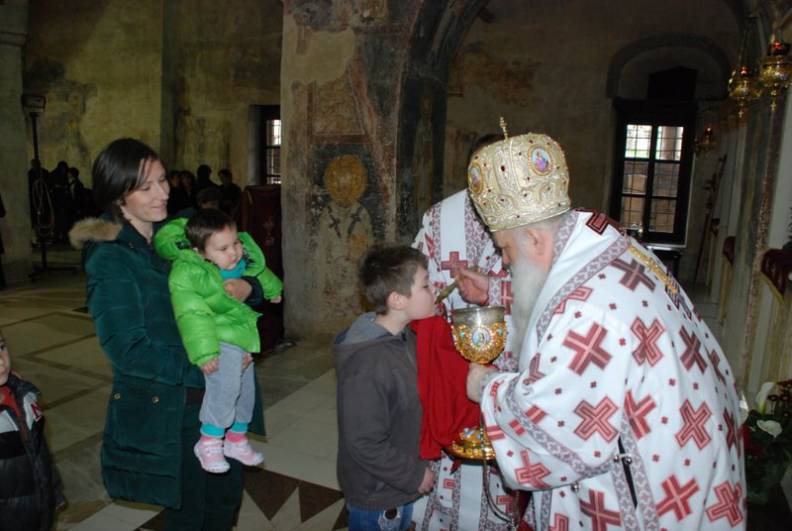 На ден 07.04.2013 година, по повод двата големи празника: светото Благовештение и Третата недела од Великиот пост, позната уште и како Крстопоклона недела, во соборниот храм „Св. Софија“ во Охрид, беше отслужена света архиерејска Литургија, на која чиноначалствуваше Неговото Високопреосвештенство Митрополитот Дебарско-кичевски г. Тимотеј, во сослужение на архимандрит Нектариј, протоереј Зоран Данев, свештениците Љупчо Симиџиески, Никола Христоски и Горан Ставрески и ѓаконите Николче Ѓурѓиноски и Сашо Целески. Според Уставот на православната Црква (Типикот), на крајот од Утрената служба, беше изнесен за целивање и светиот Крст, кој постојано нè потсетува на подвигот на нашиот Спасител, Господ Исус Христос, но истовремено, и ни дава сила за завршување на нашиот подвиг во Велигденскиот пост, зашто кој сака да учествува во Воскресението Христово, тој мора да земе учество и во Неговиот Крст. На Литургијата присуствуваше многуброен верен народ, кој подготвен пристапи кон светата тајна Евхаристија и се соедини со Спасителот Христос. Митрополитот Тимотеј се обрати кон верното стадо со пригодна беседа, која во целост ви ја пренесуваме.