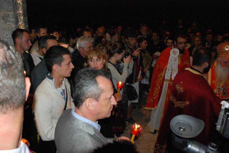 На овој најрадосен празник, торжеството над сите торжества, сиот православен народ дојде во светите храмови да Го прослави Воскреснатиот Христос – Победителот. Христовото Воскресение беше прославено и во манастирот „Св. Климент и Пантелејмон“ на Плаошник во Охрид, каде беше отслужена света архиерејска Златоустова Литургија, на која чиноначалствуваше Неговото Високопреосвештенство Митрополитот Дебарско-кичевски г. Тимотеј, во сослужение на свештениците Никола Христоски, Горан Ставрески и Владо Недески и ѓаконите Николче Ѓурѓиноски и Васко Голабоски. На празничната богослужба беше присутен и г-дин Трајко Велјаноски, Претседател на Собранието на Р. Македонија. Многубројниот верен народ го исполни Светиклиментовиот манастир, а многумина од нив учествуваа до доцна во ноќта на светата Литургија и се причестија со светото Тело и Крв Христови. Од местото каде што беше објавено Воскресението Христово, беше прочитано и Велигденското послание, во кое Архиепископот Охридски и Македонски г.г. Стефан, заедно со членовите на Светиот архиерејски синод на Македонската православна црква – Охридска архиепископија, ги поучи верниците со зборовите: