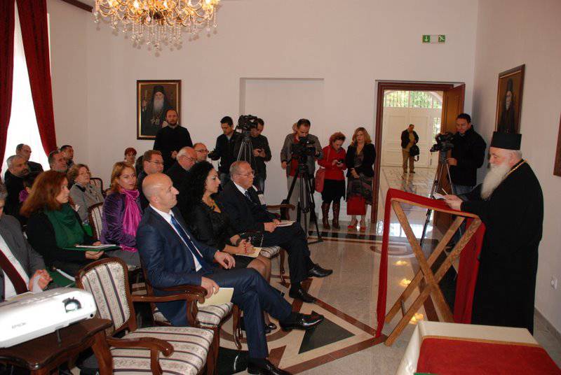 Чест ми е, како архиереј на Македонската православна црква, поточно како митрополит на Дебарско-кичевската епархија, со седиште во свештениот Охрид, да Ве поздравам и да Ви посакам топло добредојде во овој дом, закрилен од светите Климент и Наум, Охридските Чудотворци. Особено би сакал да го поздравам присуството на градоначалникот на град Охрид, д-р Никола Бакрачески, академикот Цветан Грозданов и академикот Вера Битракова-Грозданова, директорот на Комисијата за односи со верските заедници и религиозни групи, д-р Валентина Божиновска, учесниците на овој Собир, почитуваните известувачи на македонските информативни, електронски и пишани медиуми и на сите почитувачи на Македонската православна црква и на делото на нашиот познат иконописец, Димитрија Дичо Зограф. Уште еднаш Ве поздравувам и Ви посакувам пријатно да се чувствувате во Охрид.