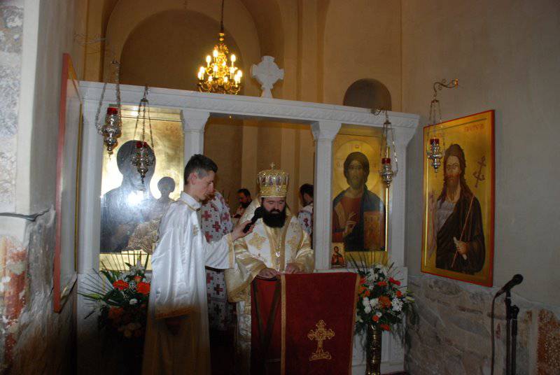 Прославата продолжи на самиот ден на празникот, со света архиерејска Литургија, на која чиноначалствуваше Митрополитот Тимотеј, во сослужение на Митрополитот Европски г. Пимен, Митрополитот Кумановско-осоговски г. Јосиф, архимандритот Нектариј, протоереј-ставрофор Ефтин Велкоски, протоерите Димче Ѓорѓиески, Игор Никовски и Горан Мантароски, свештениците Никола Христоски, Димче Азески и Владо Недески, протоѓаконот Николче Ѓурѓиноски и ѓаконот Сашо Целески. По завршувањето на Литургијата, беше извршен Чинот на Мал водосвет и беше прекршен празничниот колач, а Митрополитот Јосиф се обрати кон верниците со пригодна беседа. Во продолжение, ви ја пренесуваме беседата на Митрополитот Тимотеј.
