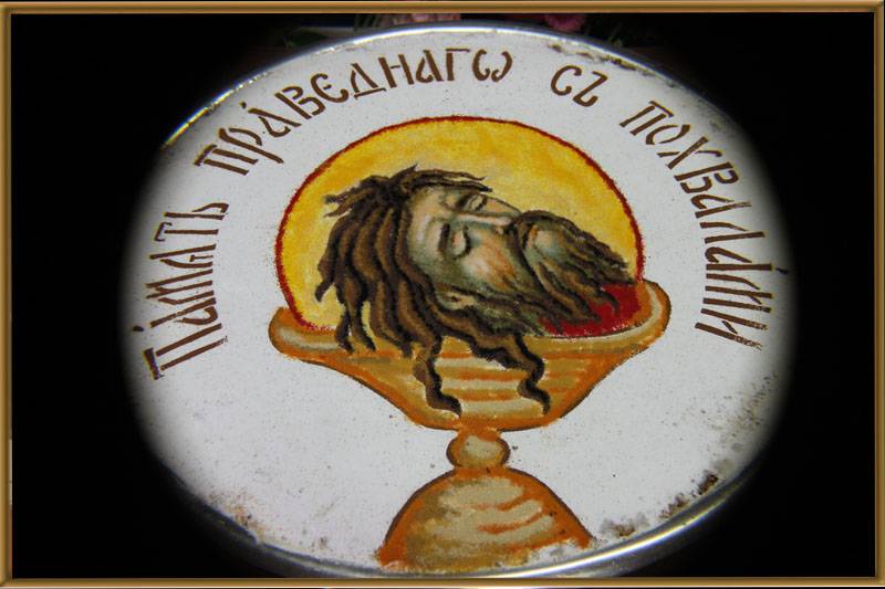 „Откако се собравме, верни, да го прославиме посредникот меѓу законот и благодатта, оти тој ни проповедаше покајание, смело и јавно го укори Ирода, и главата му беше отсечена. И сега, живеејќи со ангелите, се моли на Христа да се спасиме“ (седален на Утрена на Отсекување на чесната глава на св. Јован).