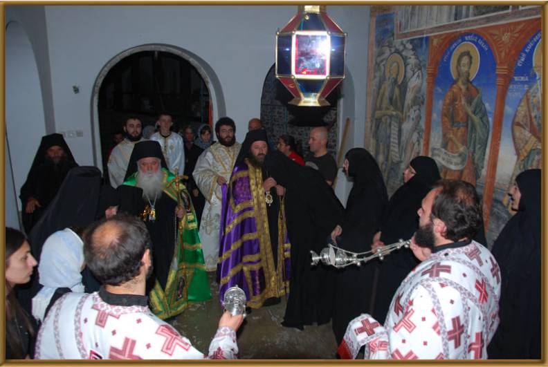 Во првата недела по Педесетница, го прославуваме споменот на сите светии од целиот свет, кои Му угодиле на Бога со нивните врвни добродетели, а многумина од нив и со своите животи. На овој светол ден, кога се потврдува слегувањето на Светиот Дух врз апостолите, а преку нив и на сите светии, кој оваа година го прославивме на 30.06.2013 година, во манастирот „Сите светии“ во с. Лешани, Охрид, беше отслужена света архиерејска Литургија, на која чиноначалствуваше Неговото Високопреосвештенство Митрополитот Дебарско-кичевски г. Тимотеј, во сослужение на протоереј Темелко Донески, еромонах Вартоломеј, протоереј Стево од Преспанско-пелагониската епархија, свештеник Владо Недески и ѓаконите Николче Ѓурѓиноски и Васко Голабоски. По завршувањето на Литургијата беше осветен новиот крст, кој беше поставен на кровот од капелата, а беше извршен и чинот на Мал водосвет и беше прекршен празничниот колач. Митрополитот Тимотеј се обрати кон верните чеда со пригодна беседа, која во целост ви ја пренесуваме.