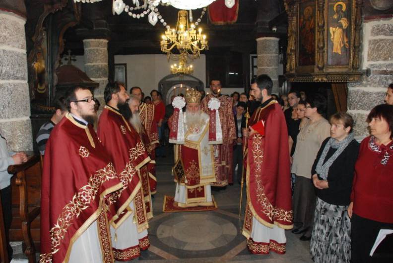 Неговото Високопреосвештенство Митрополитот Дебарско-кичевски г. Тимотеј, во сослужение на архимандрит Нектариј, свештениците Никола Христоски, Горан Ставрески и Ѓорѓи Блажевски и ѓаконот Сашо Целески. По завршувањето на Литургијата, беше извршен чинот на Водосвет во Светла седмица и беше прекршен празничниот колач.