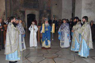 Благовештение – објавувањето на благата вест за Христовото раѓање и за почетокот на нашето спасение, како што се пее во тропарот на празникот, во Охрид свечено беше прославен со света, божествена архиерејска Литургија во катедралната црква на охридските архиепископи, „Света Софија“.