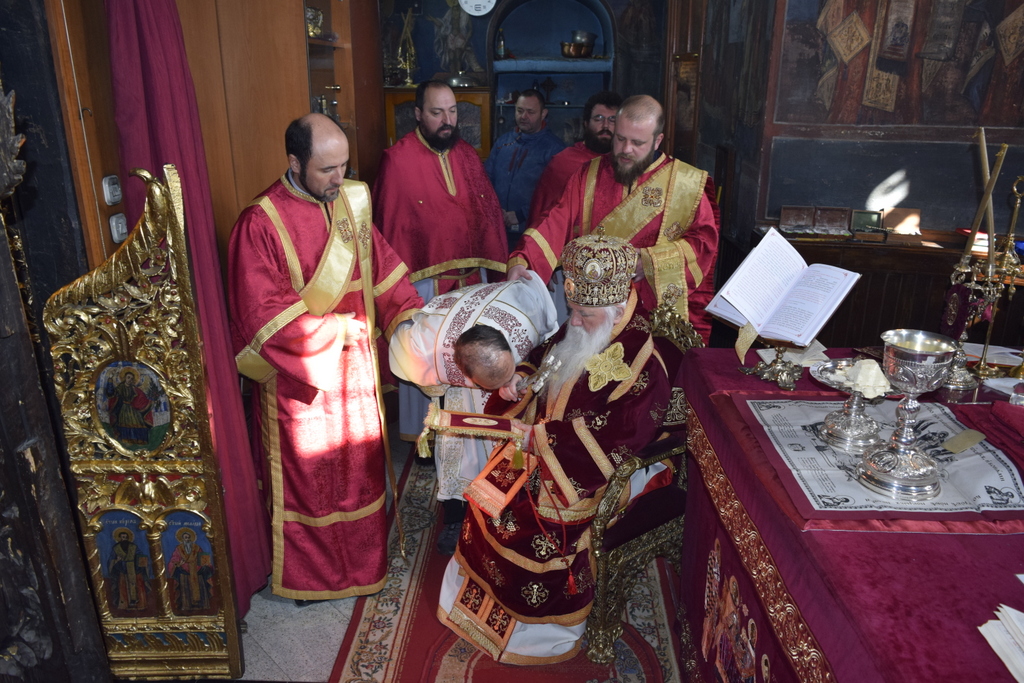 На 23.02.2022 година, денот кога го празнуваме споменот на светиот маченик Харалампиј, во храмот „Успение на Пресвета Богородица“ - Каменско во Охрид, беше отслужена света архиерејска Литургија, на којашто чиноначалствуваше Неговото Високопреосвештенство Митрополитот Плаошко-струшки и Дебарско-кичевски и Администратор Австралиско-сиднејски г. Тимотеј, во сослужение на протоерејот-ставрофор Никола Христоски, свештениците Димче Азески, Ѓорѓи Блажевски и Оливер Димитров, еромонахот Никодим, протоѓаконот Николче Ѓурѓиноски и ѓаконот Марко Спасовски. На денешниот ден на маченикот, Митрополитот Тимотеј го ракоположи во ѓаконски чин дипломираниот богослов Драган Шуминоски. Од името на Митрополитот, свештенството, монаштвото и сите верни чеда на нашата Епархија, му го честитаме чинот на Драган, со молитви кон Севишниот Он да го упатува по стапките на Неговите заповеди. По завршувањето на Литургијата, беше благословен медот, а Митрополитот Тимотеј се обрати кон верниците си пригодна беседа, којашто интегрално ви ја пренесуваме.