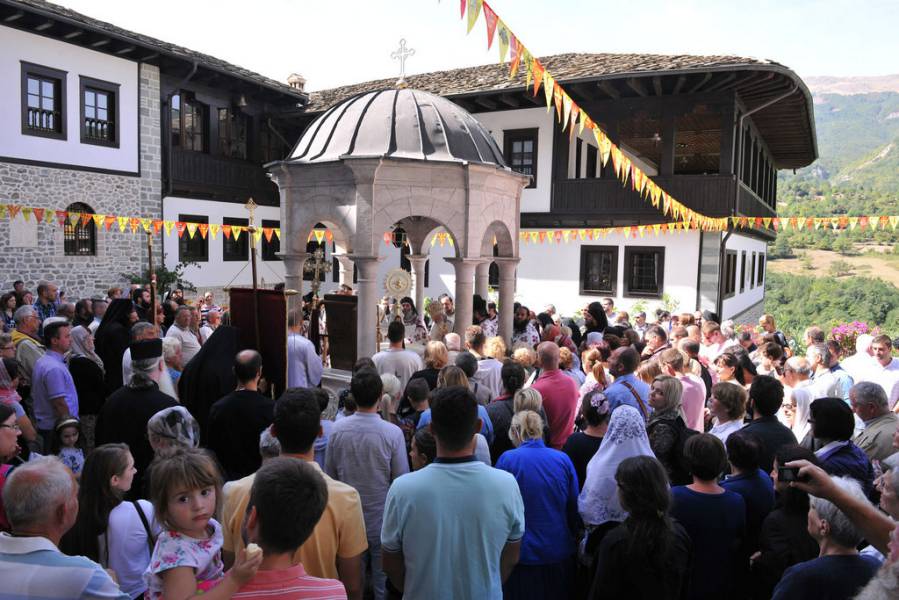 „Богомудри луѓе, соберете се, зашто скинијата на Божјата слава, од Сион се преселува во небесното живелаиште, каде што се слуша чистиот глас на тие што празнуваат, гласот на радоста неискажлива, на оние што весело му пеат на Христа: Најпрославен Боже на татковците, и наш, благословен си“ (песна од Канонот на Утрена на Успение на Пресвета Богородица).