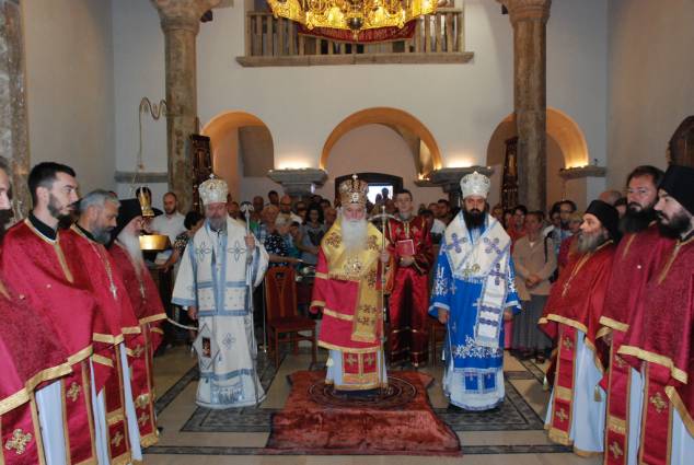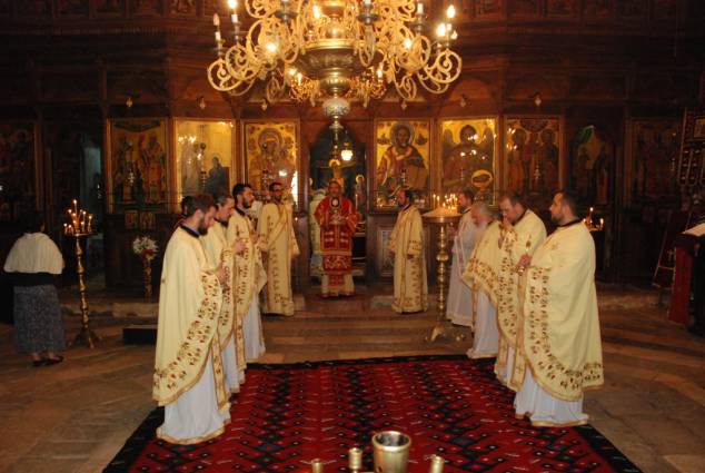 Празнувањето на овие големи празници, започна ден претходно, на 08.08.2015 година, со свечена Вечерна богослужба во манастирот „Св. Климент и Пантелејмон“ на Плаошник во Охрид, на која чиноначалствуваше Неговото Високопреосветенство Митрополитот Дебарско-кичевски г. Тимотеј во сослужение на протоереј-ставрофор Сашо Богданоски, протоереј Димче Ѓорѓиески, свештениците Никола Христоски, Димче Азески, Ѓорѓи Блажевски и Роберт Илијевски, протоѓаконот Николче Ѓурѓиноски и ѓаконот Сашо Целески. По завршувањето на Вечерната, Митрополитот Тимотеј се обрати кон присутните верници со пригодна беседа, која подолу ви ја пренесуваме во целост. А по кратката пауза од Вечерната служба, пред моштите на нашиот покровител, светиот Климент Охридски, беше прочитан и Акатистот на светителот.