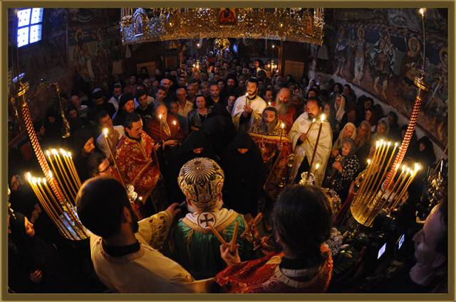 „Вие, кои на земјата и ги оставате земните грижи, на правта и ги отстапувате калта и отпадот, ајде да се отрезниме, ние смртните, очите и мислите да ги издигнеме во висините, погледот и чувствата да ги впериме кон небесните врати, да си замислиме дека сме на Маслиновата Гора, и да Го созерцаваме Избавителот, носен на облаците, зашто оттаму Господ се вознесе на небесата, и таму ги раздели изобилните дарови на Своите апостоли, откако ги утеши како татко, и ги утврди, и ги поучи како синови, и им рече: Не се разделувам од вас; Јас сум со вас, и никој ништо не ви може“ (икос на празникот Вознесение Христово).
